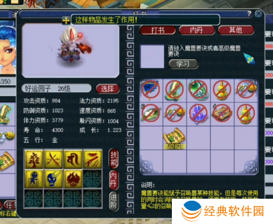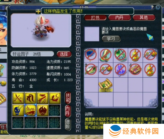 然而,命运似乎并未眷顾这位玩家,合出的广目仅保留了3个技能,其中并未包含特殊技能净台或欣欣向荣技能。尽管这次打书炼妖以失败告终,但每一次的尝试与挑战,都是对游戏热爱的最好诠释。