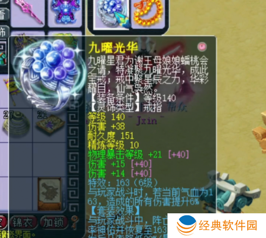 140级戒指,主属性伤害,下排2伤害1物暴,带6级163。