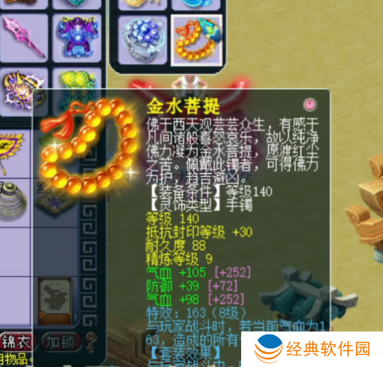 140级手镯,主属性抗封,下排2气血1防御,带8级163。