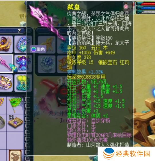 160级武器,附加穿刺效果+1.03%,15锻红玛瑙,总伤1001。