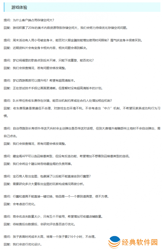 关于游戏体验方面,策划表示大家最关心的破卡问题会在新资料片得到解决。不过,策划虽然认为收费带队普遍不合理,但不会考虑出“中介”机制。除此之外,策划还对道具、美术、清晰度、宝图等问题进行了回应,后续应该会有轻度调整。