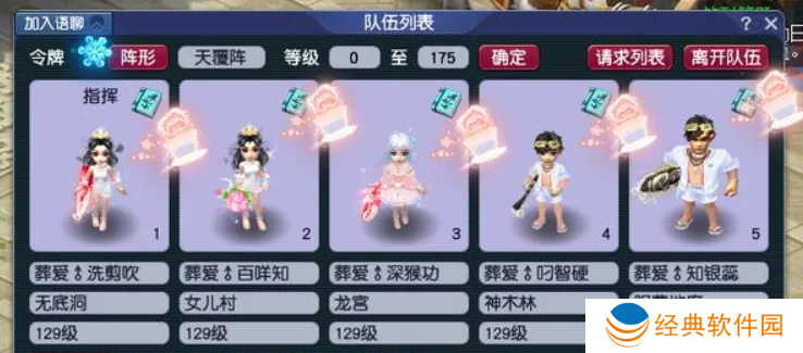 另外129也可以玩5个同门派,如5女儿村、5地府。