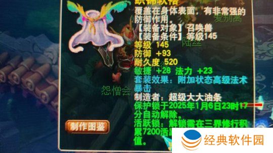近日,一位小伙伴在打造召唤兽装备时,意外炸出了一件145级初防93,敏法双加51,附带高级法术暴击的召唤兽铠甲。单就属性来说,这件铠甲虽然初防不高,但双加非常给力,特别适合有竞速需求的小伙伴,再加上其本身就是须弥法宠带的装备,附带的套装也非常合适,应该能卖个相当不错的价格!