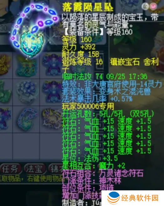 这是号称全服前三的160级项链,初灵296点,非大唐官府使用-14点灵力,还附加法术暴击几率+0.57%,打了16锻舍利子总灵392非常顶级。就算大唐不是顶尖法系,但大家觉得这条项链可以排到前三吗?