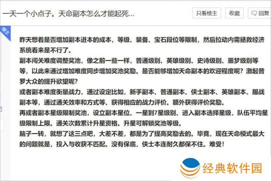 这位玩家表示想要提高副本任务的门槛,要求进入副本任务不只需要等级,还需要装备的宝石的段位需要达到等级的限制,以此来筛选那些强度不高的玩家。只能说这个想法太逆天了,是肯定不会被采纳的。