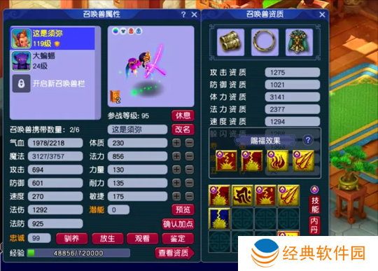 通常情况下,大家都会选择技能数量较多的宝宝进行赐福,因为宝宝数量越多,赐福命中几率也会越高。但是这位玩家就硬生生给自己的5技能须弥整出个4赐福,真的是每个赐福技能都恰到好处。