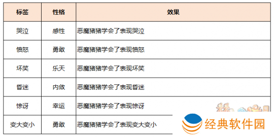 2、重塑恶魔猪猪性格后,已获得的五形变化类标签不会遗失,可以通过重塑性格来集齐不同类型的表情贴图和变大变小效果。