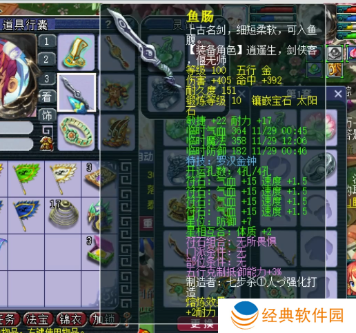 100级罗汉武器,10锻太阳石,伤害+405,熔炼后耐力+19,敏捷+22。这把武器缺一个神佑,后续可以考虑更新一个神佑特技武器。