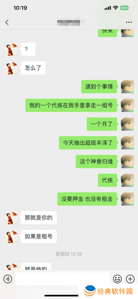 号主表示:他和管家关系并不是所谓的朋友,他们之所以认识,是因为去年帮号主开了3个月号,号里有一组林中鸟,要什么装备我给他买什么装备,没收租金,没收押金,三界不够要求号主给补,号主感觉亏钱就闹崩了。