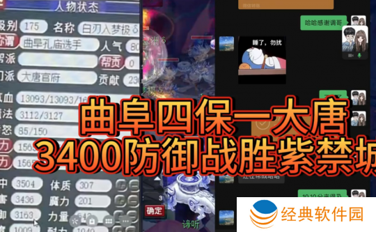 曲阜三刀大唐的决赛夺冠属性曝光了,居然特意加高防御到3163的情况下,防伤害有3436、气血有1.6万。这加点很针对也是值得三连冠啊,调哥当场给阿七转账77777!