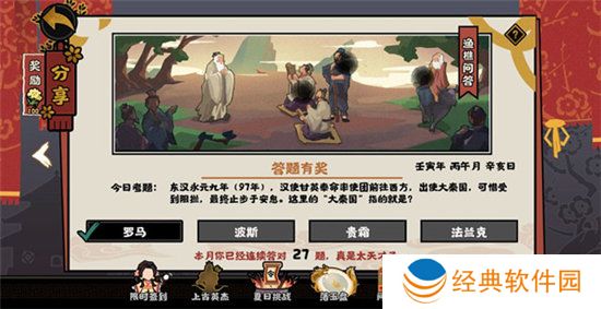 无悔华夏是一款非常好的大型的2D网络游戏,无悔华夏游戏的背景故事是以古代的事件围绕起来的,超级经典的游戏画风给人带来视觉上的享受,可以体验到不一样的游戏感觉。那么在游戏中有许多的玩法是需要小伙伴们去发掘的,里面有超级多的激活码、兑换码、还有各种的福利统统等你来领取哦!这款游戏每天都会更新不一样的问题,那么无悔华夏6月27日渔樵问答答案是什么?在无悔华夏这款游戏中,每天都会更新夏渔樵问答的问题,小伙伴们只需要答题正确就能获得奖励,那么下面为大家带来了关于无悔华夏渔樵问答6.27答案分享,希望可以帮助到有需要的小伙伴们更好的了解,感兴趣的就来看吧!