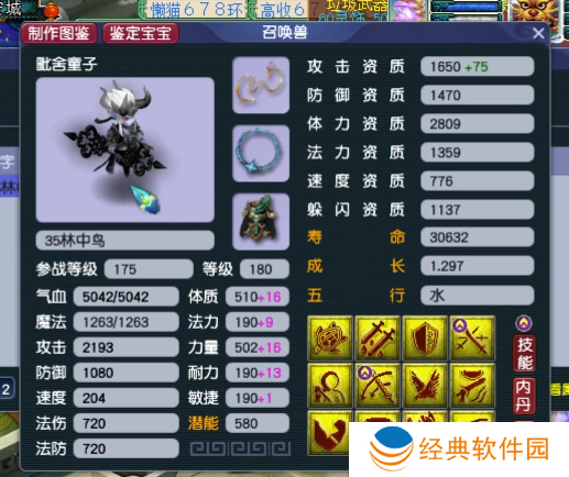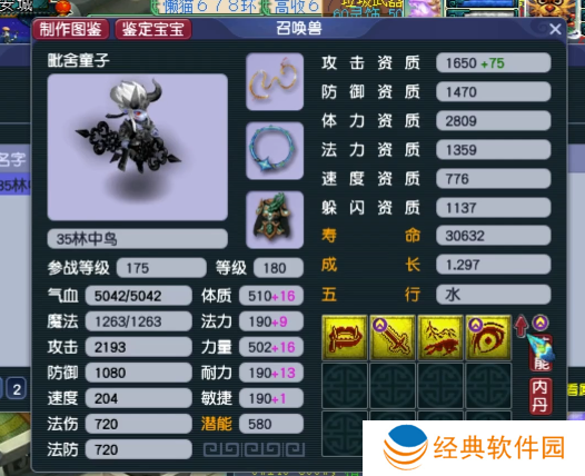 140级佩饰,主属性速度,下排2防御1气血,带8级163。