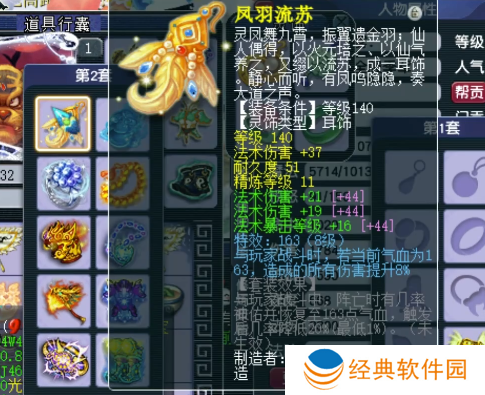 140级耳饰,主属性法伤,下排2法伤1法暴,带8级163。