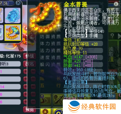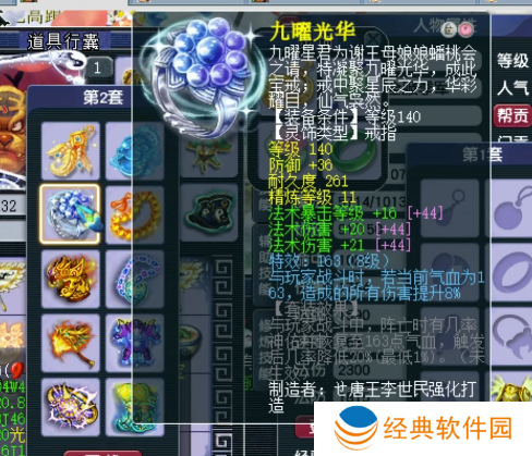 140级戒指,主属性防御,下排2法伤1法暴,带8级163。