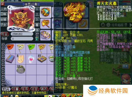 160级琴音三叠再生男头,附加法暴伤害+2.69%,16锻月亮石,熔炼后防御+297。