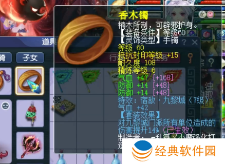 60级手镯,主属性抗封,下排2防御1气血,带7级宿敌·九黎城。