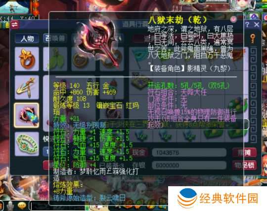 140级无级别武器,13锻红玛瑙,总伤755.67,熔炼后力量+29。