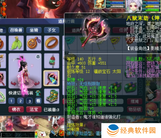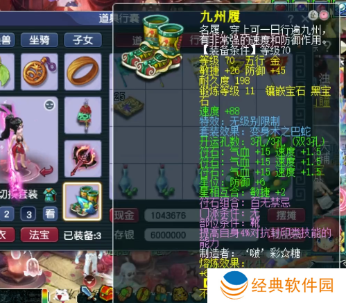 两把无级别武器的配备,无疑是为了将输出拉满。这个精锐组的九黎城玩家,成为了一位不可小觑的6x7x天地香饽饽。