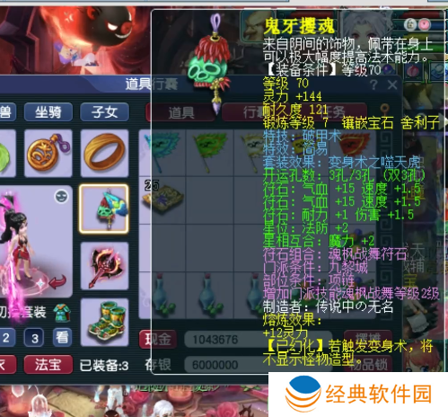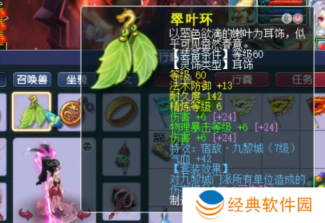 60级耳饰,主属性法防,下排2伤害1物暴,带7级宿敌·九黎城。