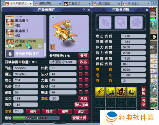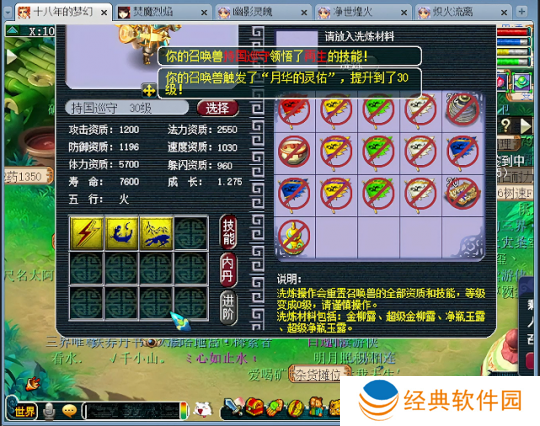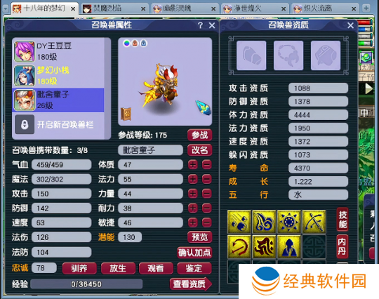 又洗了两技能须弥持国,其实可以尝试深度加工一下,看看能不能损失最小化。掏出前段时间场景产物4技能童子,这种东西最不缺,仓库里一大堆在吃灰,专门挑了个速度法资高的。
