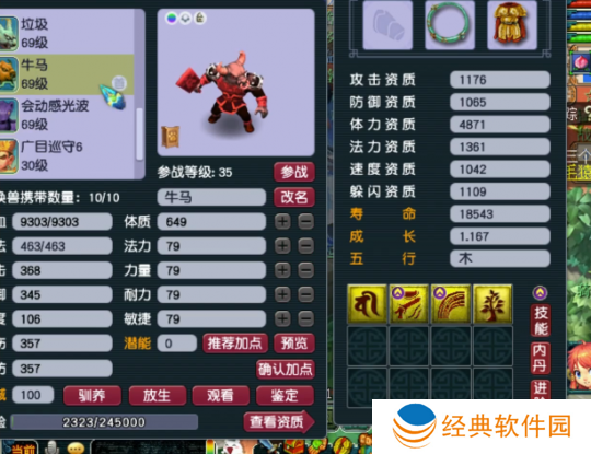 4技能树苗净台牛妖,这只宝宝也是全体加点,气血高达9303,且带反震技能。经常经常会把输出反震死吧。