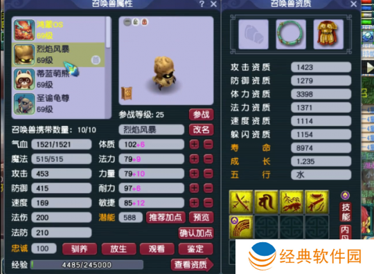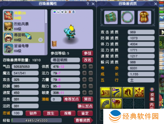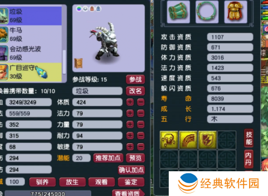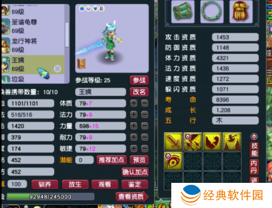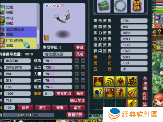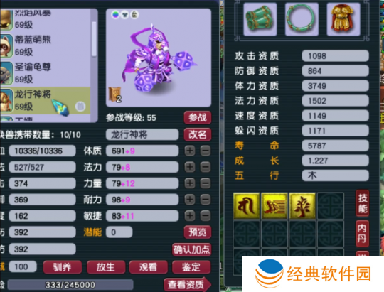 3技能净台树苗天将,这只宝宝虽然只有3个技能,但血量居然达到了10336!这队伍59级玩家来说已经是**oss级别的召唤兽了吧。