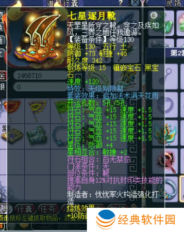 130级无级别鞋子,15锻黑宝石,熔炼后防御+83,敏捷+53。