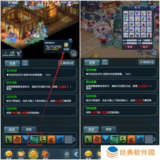 在进行师门任务时,如果需要上交物品或召唤兽,逛摊位和商会也非常麻烦。玩家要在本身就不大的游戏场景界面里,精准地寻找商品;加上NPC的对话会出现在竖屏下方,仅凭单手操作很难完成一连串的师门任务。