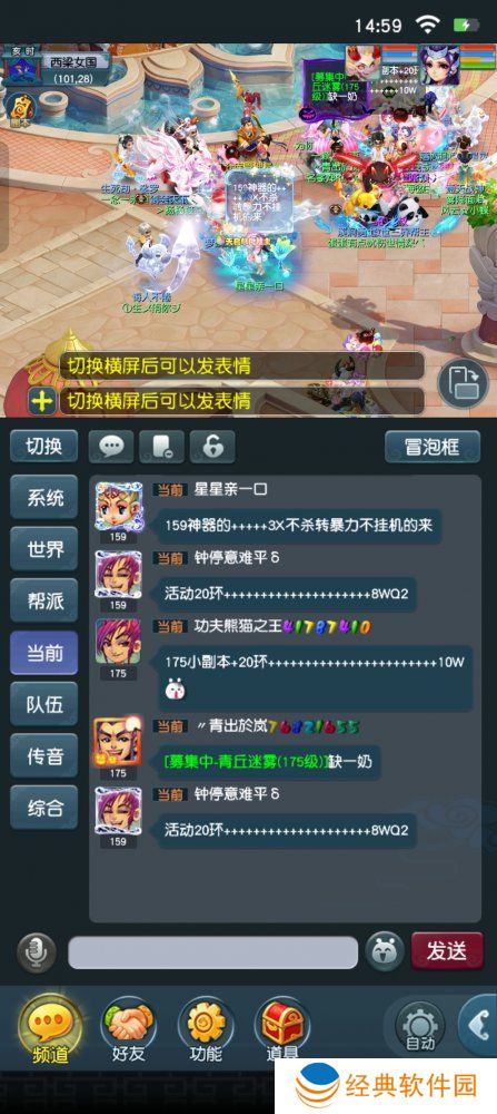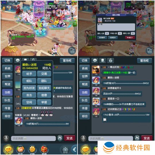 通过单手操作就能便捷地打开玩家信息菜单,进行组队,发起聊天等操作。频道中的副本招募信息也可以点击打开,只是招募详情会显示在上方的游戏场景界面中,进行后续操作存在一定不便。