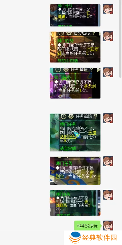 师门任务也太难了吧,有位五开玩家做师门任务的时候,真有点太衰了。一共要了5把武器和一个未激活符石,快给他气死了,有的时候还不是前面要,是第九次要,他基本上都是选择取消任务的。因为以前他遇到要70级的便宜的就交了,结果刚交了,过了一会又要武器,直接服气了,从那以后就不管是贵的还是便宜的,一律不交直接取消!