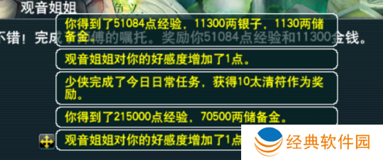 师门任务会奖励各位大量经验、金钱和储备金。