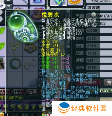 120级戒指,主属性伤害,下排2伤害1速度,带7级163。