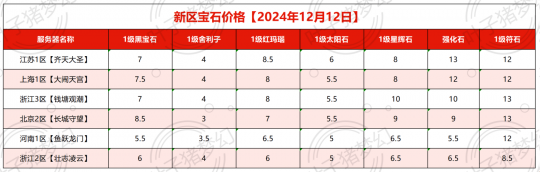 从数据来看,除了开服在一个月内的新区之外,大部分新区的宝石价格、星辉石价格、强化石价格和一级符石价格依然处于稳定状态。但按照物价和点卡比例测算,在价格不变的情况下,点卡价格越高,赚的也就越少。