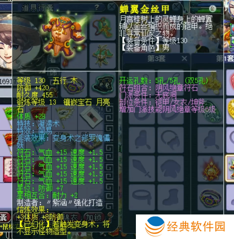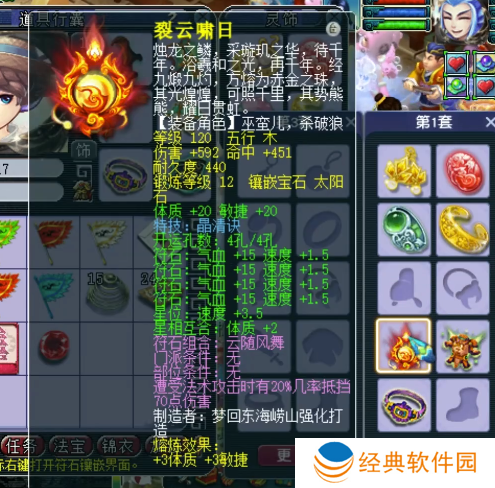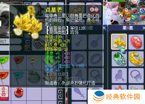 120级耳饰,主属性法防,下排3速度,带8级健步如飞。