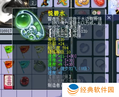 120级戒指,主属性防御,下排3速度,带8级健步如飞。