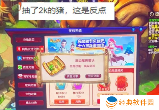 这位玩家花了2000块才抽到恶魔猪猪,本以为自己的手气不好,没想到充点卡赠送的刮刮乐里,居然刮出了一本高级必杀兽诀,这也算是消费返利了吧。