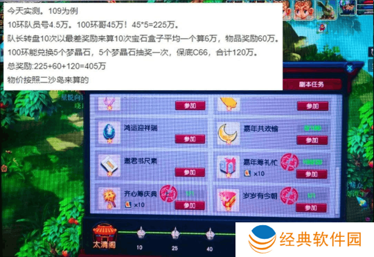 有位109级5开玩家算了下自己能在嘉年华活动中获得的奖励,5开完成100环任务差不多可以获得400多万的收益,如果是175级的玩家,那么获得的所以会更高。看来这次嘉年华活动的奖励还是非常丰厚的。
