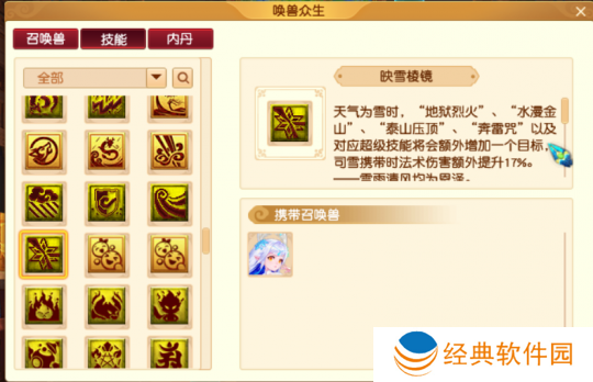 这个冰雪技能比较少见,来给大家科普一下:当天气为雪时,**会额外增加一个攻击目标,让召唤兽实现秒4的效果。
