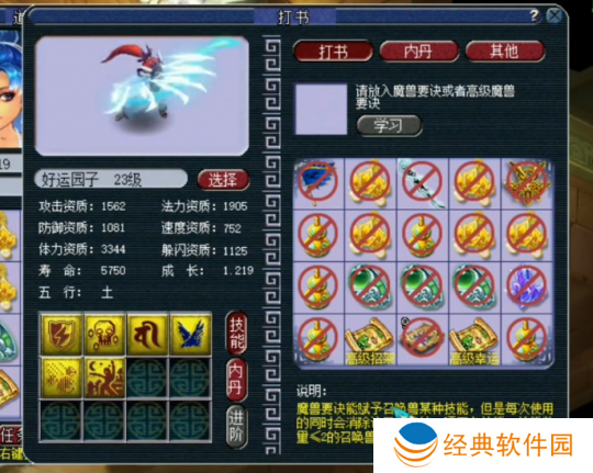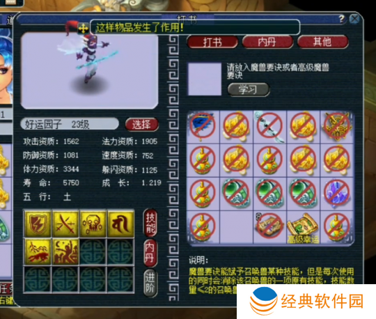 第二本上高级神佑,直接掉飞行。两本高级兽决直接干掉了两个*技能格子,这运气谁不说一个服字?一本书不循环且一个特殊技能没掉,玩家运气爆炸!