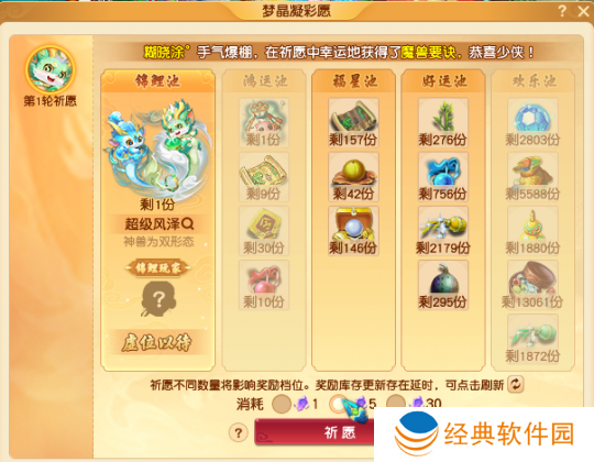 猪队长觉得,与其积累30枚梦晶时抽奖,不如5枚一抽来的痛快。毕竟,嘉年华抽奖本身就是冲着神兽去的,30枚一抽虽然有保底奖励,但5枚一抽的话可以抽6次,参与感也比较强。