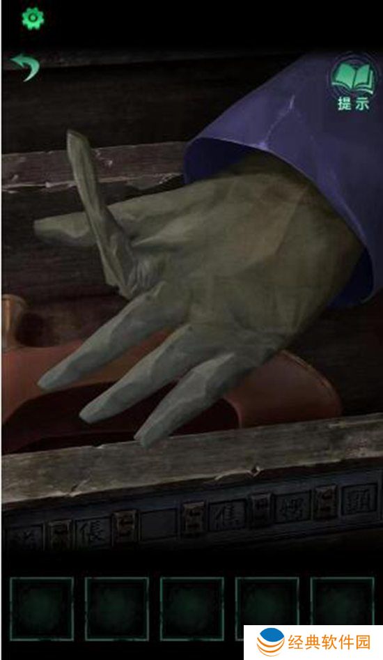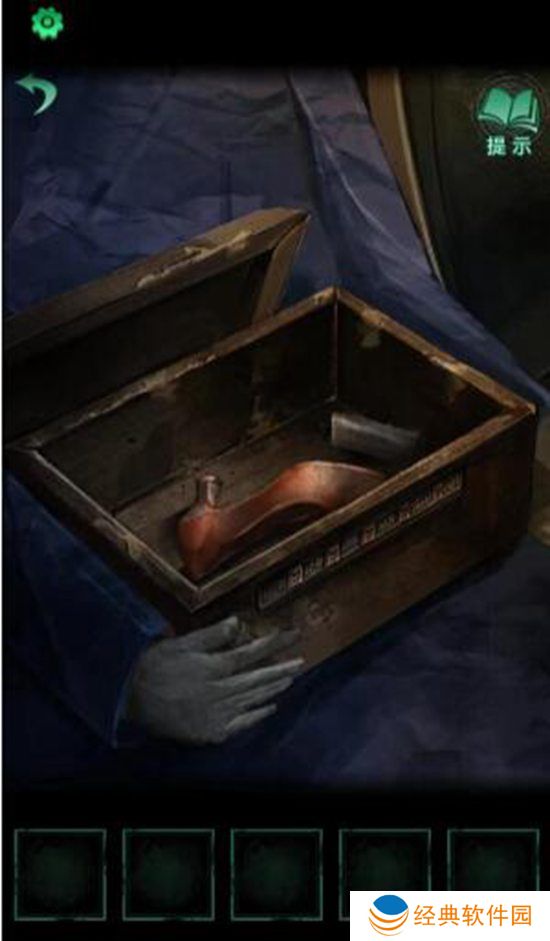 4、根据缢伥 焦娚颤的顺序,打开纸人手上的盒子,但纸人不让,再根据之前手指的顺序,食指、小拇指、大拇指、中指、无名指,拿开纸人的手指获得高跟鞋和蜡烛;