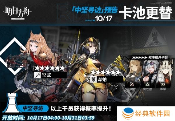 明日方舟在不久前正式发布了有关于10月17日中坚寻访的相关信息,本次进店干员为空弦和陨星。