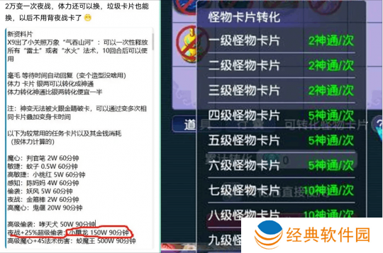 夜战卡可以说是每个物理系日常任务都必备的卡片,目前副本产出的夜战卡不多,夜战卡也从最初的3w梦幻一路涨至5-6w梦幻币。不过新资料片的七十二变玩法就很好地解决了这个问题,玩家可以用体力兑换神通进行变身,获取对应变身卡的效果,而夜战卡在新变身系统里每小时成本只要2w,可以说非常实惠了。