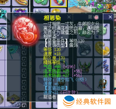 120级佩饰,主属性速度,下排2法防1气血,带6级健步如飞。
