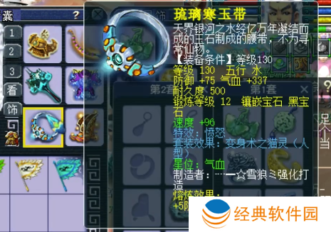 130级愤怒腰带,12锻黑宝石,熔炼后防御+80,气血+348。