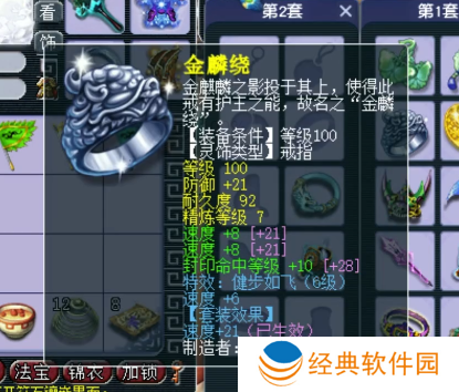 100级戒指,主属性防御,下排2速度1封印,带6级健步如飞。