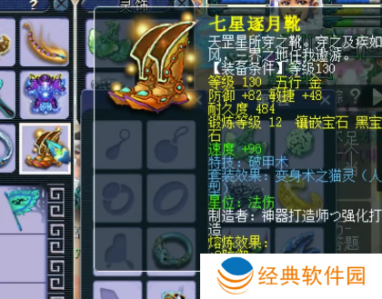 130级破甲术鞋子,12锻黑宝石,熔炼后防御+90,敏捷+38。