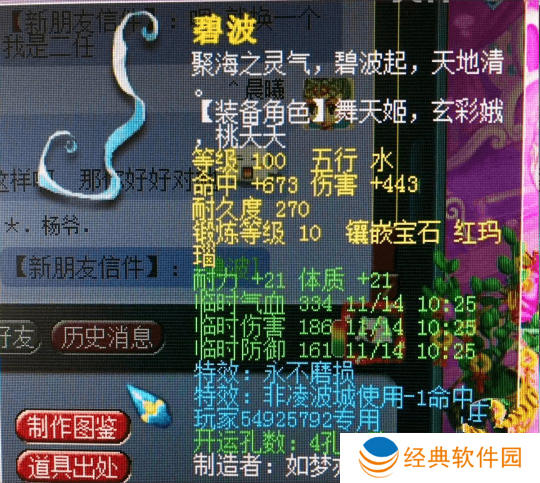 这位玩家拥有一把100级的物理系梦想武器,不仅有着不错的双加属性,还有永不磨损的特效,109的玩家用起来真是非常舒服,可以一把武器走天下了。