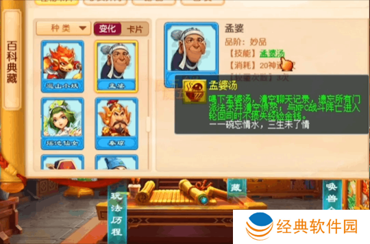 龙凰和恶魔猪猪都是拥有着死亡免疫的功能的,可以让各位玩家的角色死亡的时候不受到损失,但是令很多玩家没想到的是,本次新资料片上线以后居然带来了新的死亡免疫的玩法,那就是在新的卡片系统中玩家变身为孟婆后是可以使用孟婆汤的,使用了孟婆汤以后就可以在与npc的战斗中不损失经验和梦幻币了。不过使用了孟婆汤以后会遗忘掉所有的门派法术,比较适合大唐官府这种靠平砍建设的门派。当然如果各位玩家即将面临被团灭,这种情况下也可以用孟婆汤。