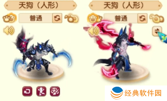 第二只:天狗(人形),参战等级105级。同样洗出来的技能上限为4个,没有必带技能,洗出来的攻击资质最高1416,防御资质1464,法术资质3120,速度资质1380,成长1.264.特殊技能与兽形一致,今后精锐组与神威组都将有自己的小谛听了,服战PK是车展,低等级PK是狗展。